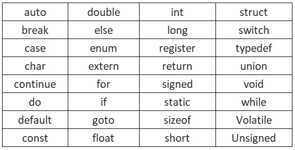 C Predefined 32 Keywords